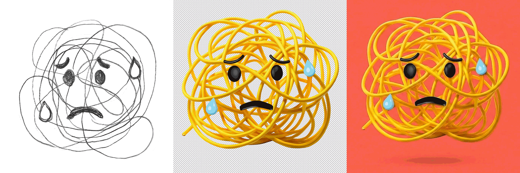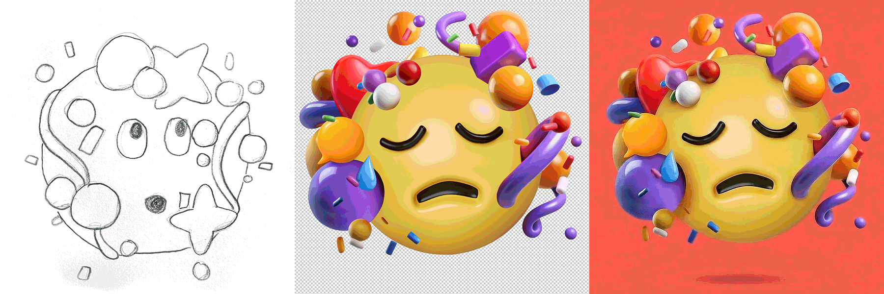 We went back to the drawing board, literally, and started exploring shapes and symbols that could help make an immediate connection to the feeling we wanted to create. We also looked at the subtle shifts in expressions that changed the connotation with a shape from positive to a negative one or vice versa.